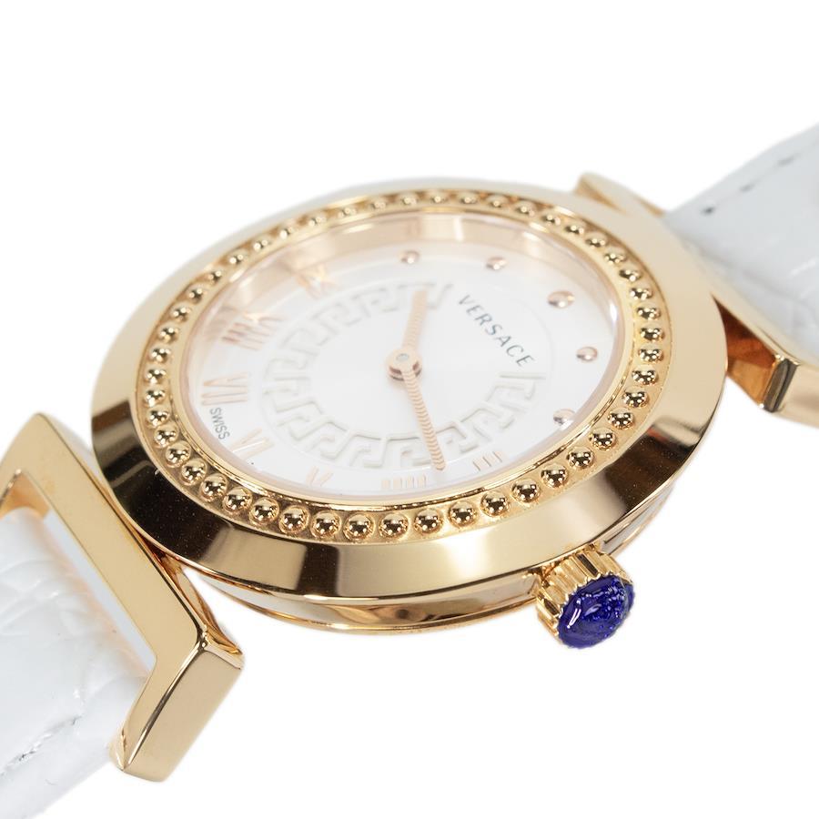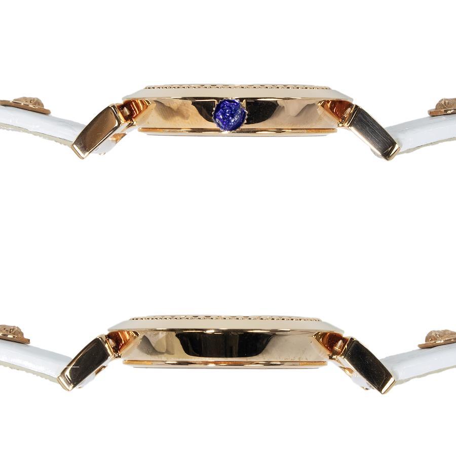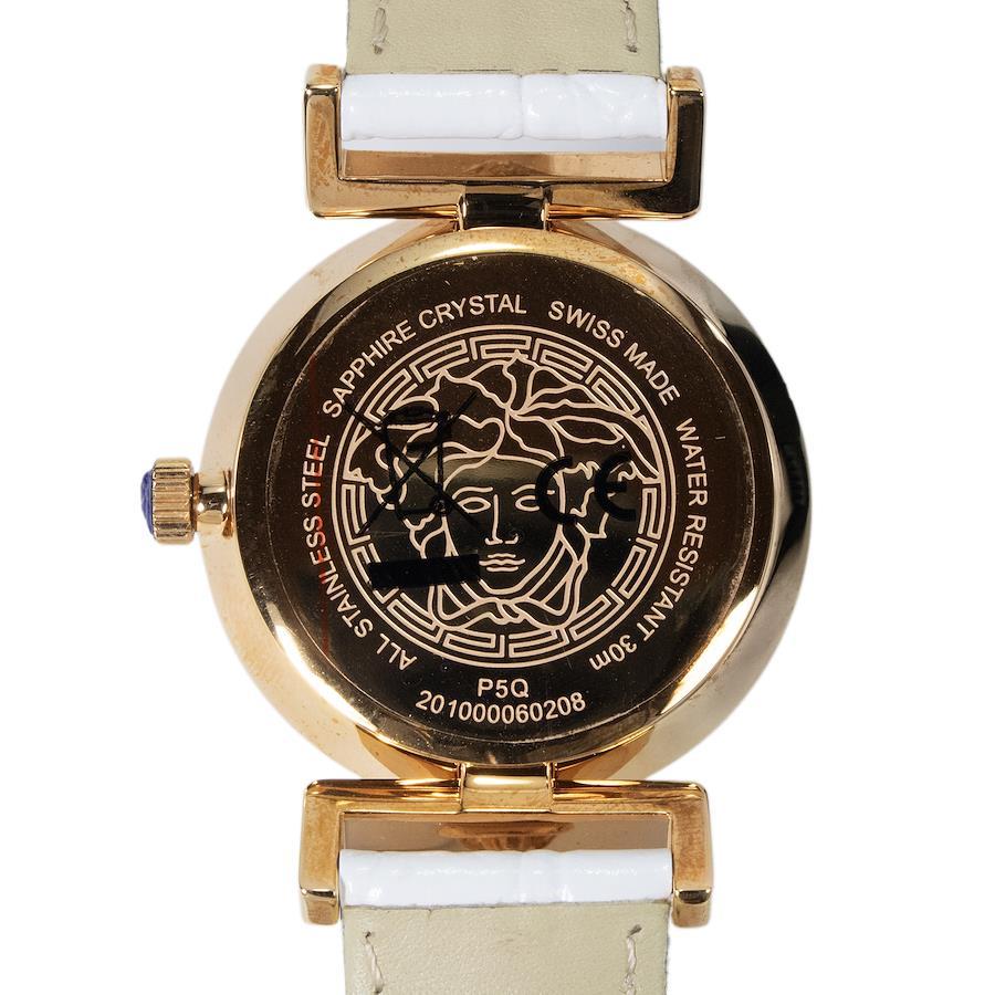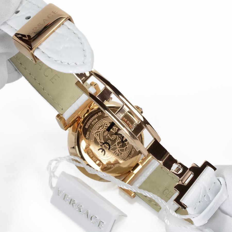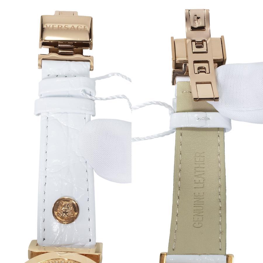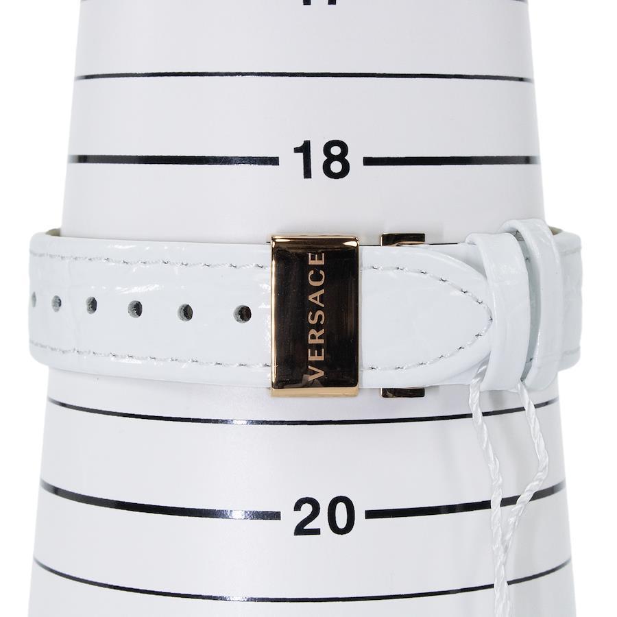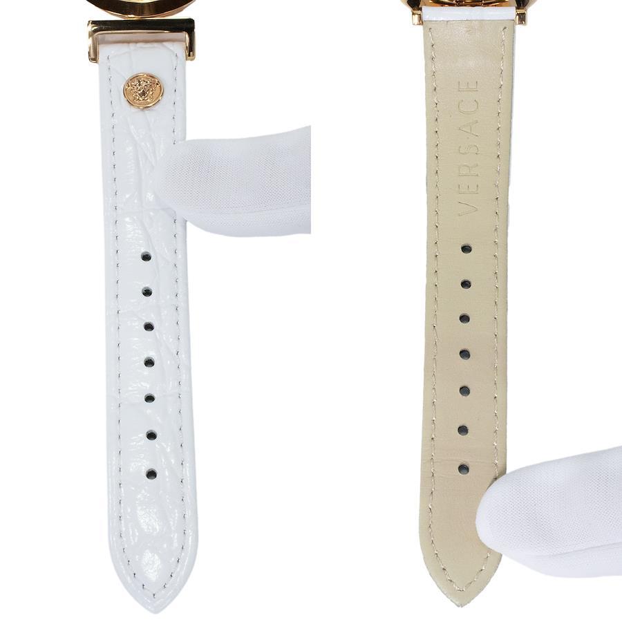 こちらは純白のレザーベルトが腕元を清楚に飾ります、ヴェルサーチェの腕時計でございます。