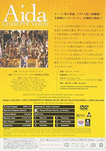 エジプト軍の英雄、ラダメス役に初挑戦した全盛期のパヴァロッティの圧倒的な熱演を収録したDVDの低価格化!(1981年作品)全3幕●パヴァロッティ全盛期のオペラ作品のDVD化!!●サッカー日本代表の中田(英)選手が口ずさみ、日本戦で日本人サポーターが大合唱し、すっかりおなじみになった「凱旋行進曲」。原曲は、このオペラ《アイーダ》の本作では第1幕第4場で、エジプト軍が勝利の凱旋をする際に演奏される、トランペットによる勇壮なマーチだったのです。●通常オペラ《アイーダ》は、全4幕で公演されますが、本作は、演出のワナメイカーによって、通常第2幕の凱旋の場が第1幕に組み込まれており、全3幕の特殊な公演となっています。●この作品には、歌詞のオリジナル言語であるイタリア語の字幕も付いており、DVDならではの機能を充分に盛り込んでいます。作品時間:163分/製作年:1981年ディスクフォーマット:片面2層/リージョンコード:2/3/4/5/6/カラー[NTSC]画面サイズ:4:3音声仕様:1ドルビー・デジタル/ステレオ字幕機能:1英語 2フランス語 3スペイン語 4ポルトガル語 5イタリア語 6日本語