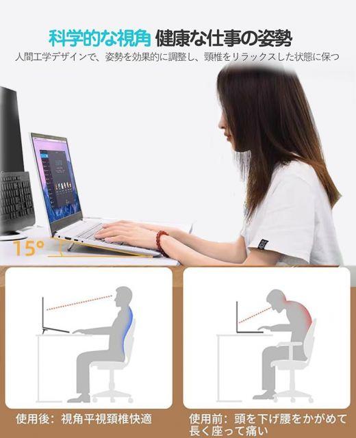 【人間工学設計&三段階調整】ラップとキーボード用のデザインこの小型ノートPCスタンドは人間工学の観点から、ハイモード、ボトムモード角度調整方法、ご自身の快適な角度に自由に調整可能。長時間のデスクワークでの体への負担を軽減し、肩こりや猫背を有効的に予防できます。長時間の作業でも楽な姿勢を保つことができます。