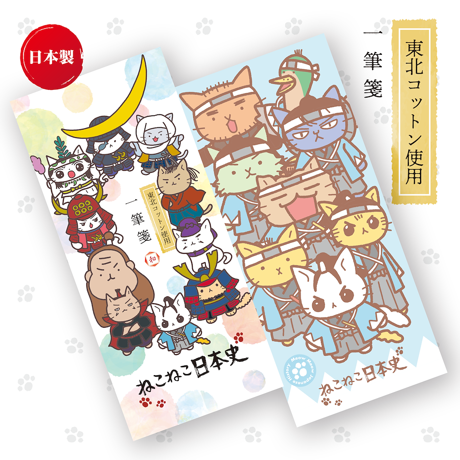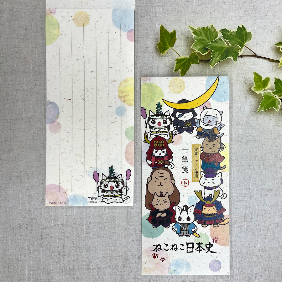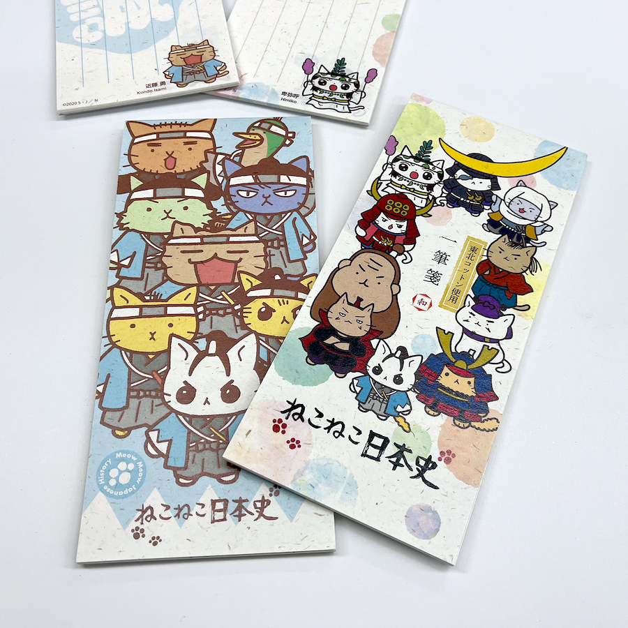 かわいい「ねこねこ日本史」のキャラクターをモチーフに東北コットンCoCを使用した一筆箋です。