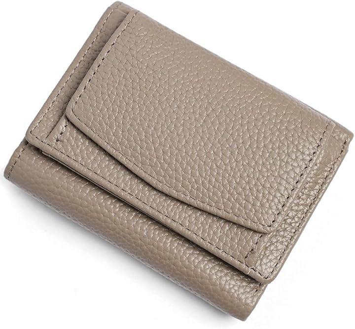 Women's Tri-fold Wallet, Compact, with Coin Purse, Genuine Leather, Mini Wallet, Thin, Lightweight, Cute, Easy to Use, Anti-Skimming, Gift