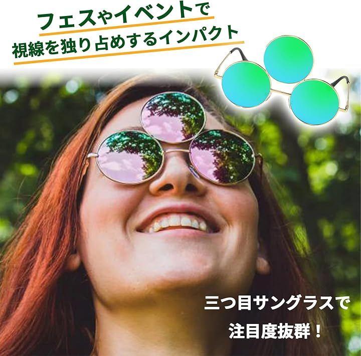 「商品内容」三つ目サングラス 1点「カラー」シルバーミラー、グリーンミラー選択可能 「サイズ」画像参照「素材」プラスティック *モニターの環境により、色の見え方に若干差が生じる場合がございます。