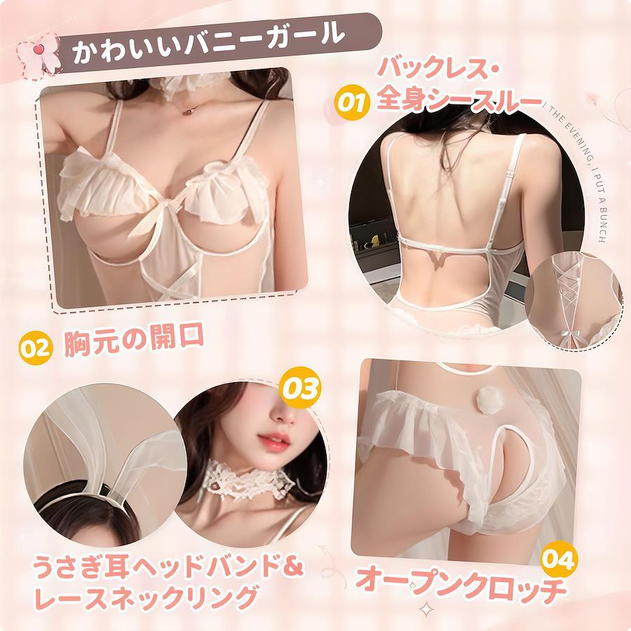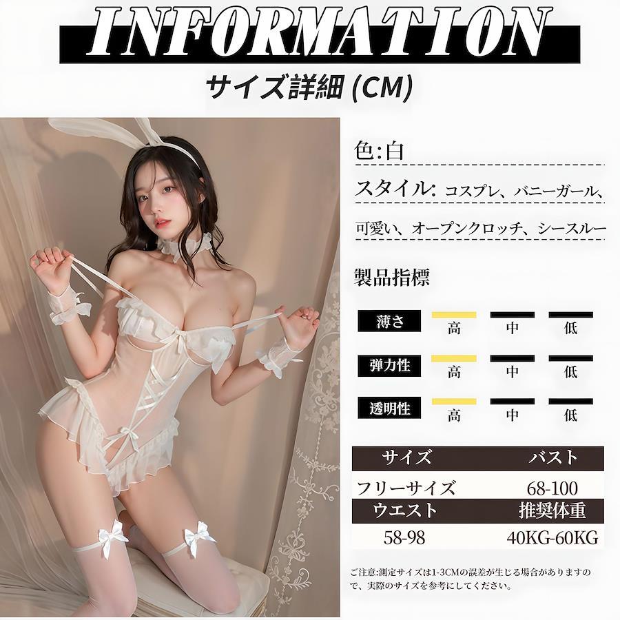 原産国 中国【セット内容】:ウサギの耳のヘッドバンド、ネックリング、ボディスーツ、手リング、ストッキング【サイズ】:フリーサイズ。バスト:68-100cm。ウエスト:58-98cm。推奨体重:40KG-60KG。【製品の特徴】:①豪華な5点セットでバニーガールを生き生きとコスプレしていて、可愛くてスーパーセクシーです。②シースルーデザインを採用しており、お尻、股間の性感帯が丸見えでとてもエロいです。③ユニークな胸元の開口デザイン胸全体が露出し、非常にエロティックでパートナーの性◯欲を刺激します。④股間とお尻の部分に開口部があるオープンクロッチデザインを採用しており、脱がずにセッ〇スでき、とても便利です。⑤背中が露出しており、女性の色気がはっきりと出ています。⑥ポリエステルとスパンデックスの複合素材を使用しているので、薄くて柔らかくて伸縮性があり、着心地抜群です。【素材】:97%ポリエステル、3%スパンデックス。薄くて柔らかくて伸縮性があり、着心地抜群。【おすすめの対象】:バレンタインデー、恋愛記念日、結婚旅行、結婚記念日、恋愛の倦怠期、クリスマスなど、欠かせないプレゼントです。セクシーランジェリーは、心の中に埋もれていた欲望を目覚めさせ、パートナー間の情熱に火をつけ、毎日を新婚初夜と同じくらい情熱的なものにすることができます。(#lf)(#lf)(#lf)商品購入前に、ストア紹介ページをご確認ください。