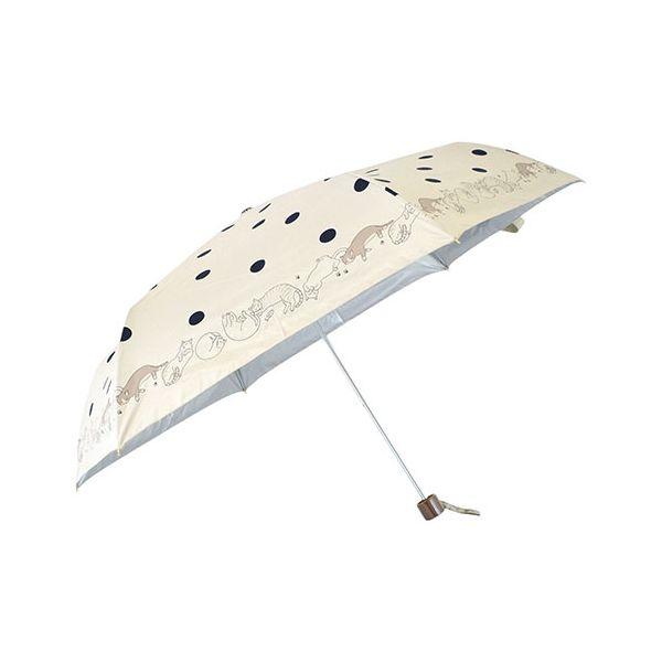 本商品はお取り寄せ商品のため、稀にご注文入れ違い等により欠品・遅延となる場合がございます。誠に恐れ入りますが、何卒ご了承ください。また、以下の場合には追加送料がかかる場合がございます。・沖縄、離島および一部地域への配送時 ・同梱区分が異なる商品の複数購入時 【同梱区分】:TS 1 【メーカー名】三国 紫外線遮蔽率/遮光率に優れる(※)裏シルバーコーティング生地を使用した、全天候対応の折りたたみ傘。定番水玉プリント×ごろんといろんな格好で寝ている猫ちゃん達が裾にプリントされている、人気の猫柄雨晴兼用傘です。共袋の持ち手部分は片側がボタンで取り外し可能なので、バッグ等に留めることもできてとっても便利な折りたたみ傘です。ボタンも猫のあしあとモチーフの型押しになっていて、猫好きさんにはたまりません!! 55cmと少し大きめサイズなので、雨傘としてはもちろん、日差しもカバーしてくれるので日傘としてもお使い頂けます。バッグに1本入れておけば、雨でも晴れでも夏でもいつでも大活躍!! ★紫外線遮蔽率 ブラック99%以上、オフホワイト/ベージュ97%以上 ★遮光率 ブラック99%以上、オフホワイト/ベージュ96%以上 また、コーティング加工なしの通常の雨傘と比較した時に、裏シルバーコーティング傘のほうが約-4℃ほど遮熱効果があると検査結果がでています。夏の暑さ対策としてもご使用いただけます。強度と柔軟性に優れたガラス繊維強化プラスチック「グラスファイバー骨」を使用。強風で「おちょこ」になっても簡単に元に戻り、折れにくい風に強い設計の骨です。親骨をポキポキ折らずとも簡単に開閉ができる折りたたみ傘です。傘を閉じる際に爪や指を挟まないよう、ボタン式の安全ろくろ付き。・生地 : ポリエステル100%/裏面シルバーコーティング加工 ・遮光率96%以上/UVカット率97%以上 ・手元 : 木 ・親骨&受骨 : アルミ&グラスファイバー ・中棒 : スチール&アルミ ・親骨の長さ : 55cm ・骨の本数 : 6本 ・全長 : 約61cm ・直径 : 約96cm ・重量 : 約210g ・収納時長さ : 25cm ・保証期間 : 初期不良対応 ・生産国 : 中国 【使用時のご注意】 ※ご使用の際は、生地をほぐしてからゆっくりと開閉してください。無理に開くと骨が折れたり傘全体に負担がかかり故障の原因になります。※製品には尖った部分があります。常に周囲の安全を確認してご使用ください。※ステッキがわりに使用しないでください。※手元、または骨の先端がこわれたまま使用しないでください。※振り回したり投げたりしないでください。強風時は破損する恐れがありますので使用しないでください。※傘は必ず手に持ってご使用ください。※生地には防水加工を施していますが刺繍部分やその他特殊加工の部分から雨が漏れる可能性があります。※天然素材や濃い色の生地を使用している場合色落ちや色移りすることがありますのでご注意ください。※使用時は水分をよく切って陰干しをしてから保管してください。※お子様には保護者の方からご注意ください。※画面上と実物では、多少色味が異なって見える場合もございます。ご了承下さい。