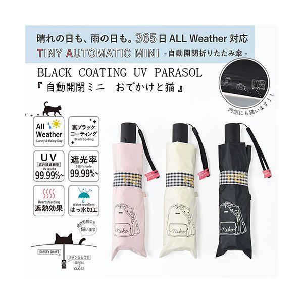 ご主人様がおでかけの準備でキャリーバッグやリュックを出していると、いつの間にか猫たちが入っている・・・猫飼いさんのあるあるを傘のプリントにしてみました!!かわいい猫さん達がキャリーバッグの中に入っていたり、リュックから顔を出していたりとかわいいオリジナルプリントの、手元ハンドルのボタンひとつで開閉できる自動開閉折りたたみ傘です。