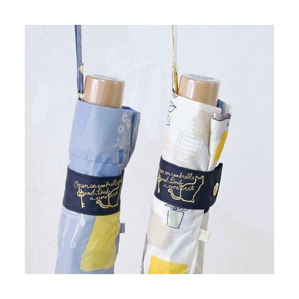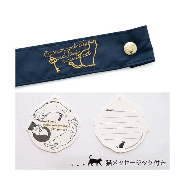 共袋のネームバンドには金糸のシリーズ共通の金糸の猫刺繍&猫のあしあとボタン付きになっていて、猫好きさんにおすすめの雨傘です!ハンドルはコンパクトなねじ式の木製で「猫います」シール付き。バッグにも収納しやすい形です。