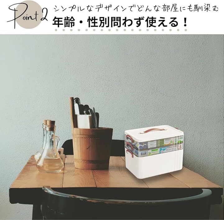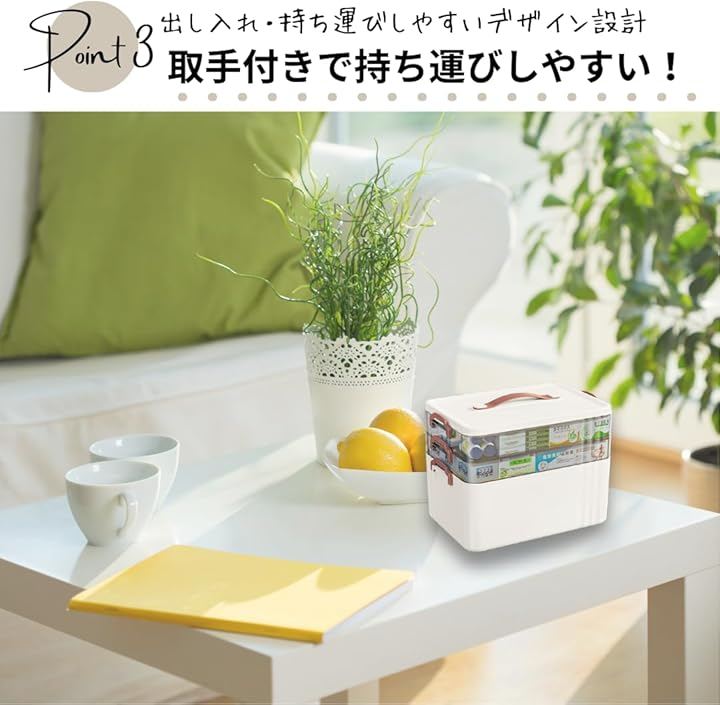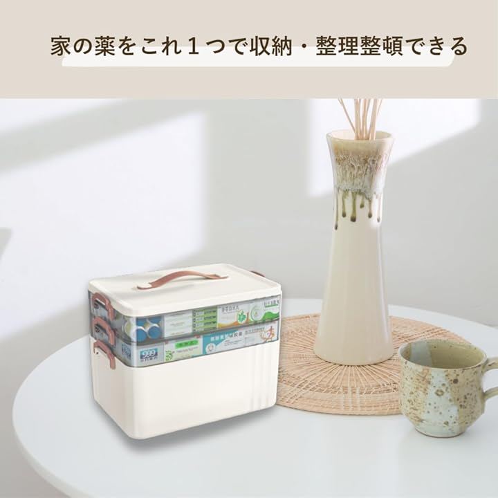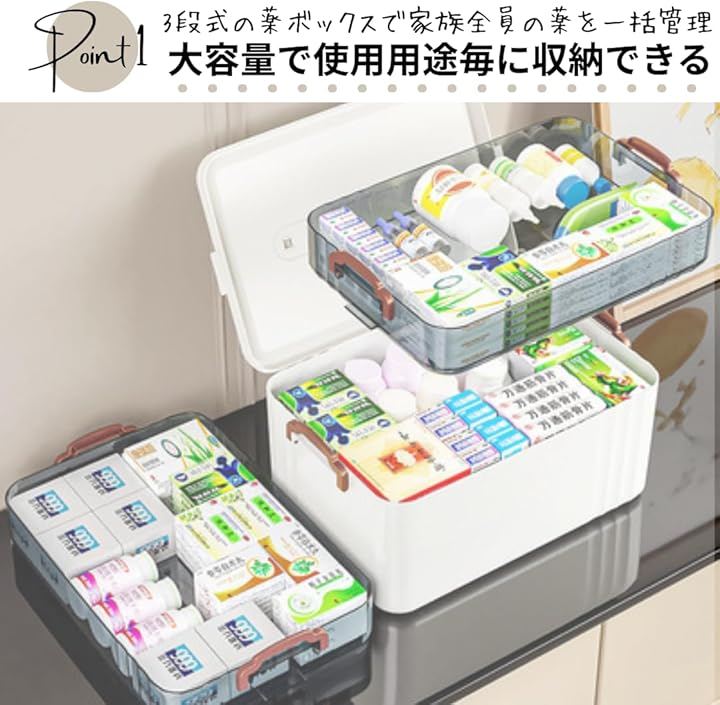 「用途毎に薬を分けれて、探す手間を省ける」応急処置、日々の服用、常備薬を分けて収納。