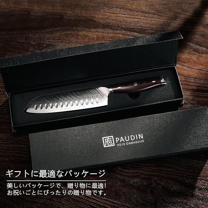 「ダマスカス製の高級包丁」 パウディンの「鳥羽仕様 高級シリーズ 三徳包丁」は、67層の鋼が使用されたダマスカス三徳包丁。