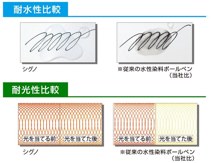 優れた耐久性と耐光性すぐれたゲルインクによりなめらかな書き味を実現しました。