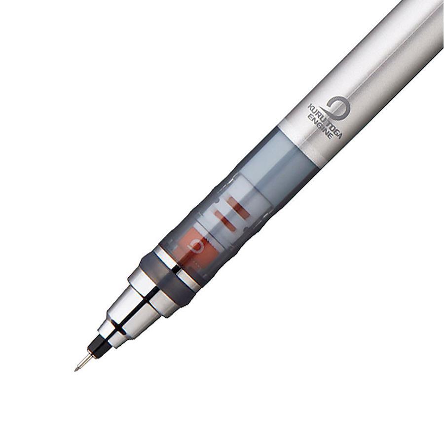 【芯が回ってトガリ続けるシャープペン】シャープペンの芯先に初めて注目して、新開発した自動芯回転機構「クルトガエンジン」を搭載したシャープペンです。芯が回ってトガり続けることで、文字が太らないシャープペンシル「クルトガ」。長時間の筆記でも、芯が片減りすることもありませんので、文字にムラがなく書けます。
