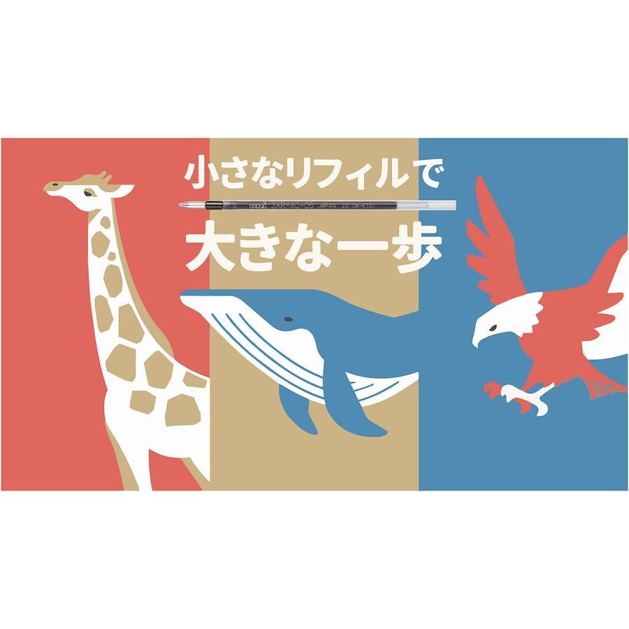 【商品特長】■環境にやさしい紙製で、店頭で商品情報が分かりやすいデザインパッケージを環境面に配慮した紙製にリニューアルいたしました。これにより年間約25トンのプラスチック使用量を削減いたします(当社概算による)。また購入時に、より商品を見つけやすくなるようパッケージ表面のデザインを変更しております。ボール径やインク色といった購入時に重要視する情報を中心部に大きく表示しました。このほか表面のQRコードを読み取ることで、ボールペン本体との互換性を確認することができます。