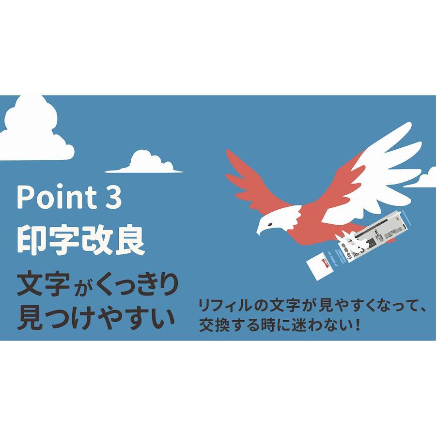 ■本体印字の視認性向上リフィルを購入する際、使用済みのリフィルと見比べながら探すユーザーが多いことから、リフィル本体の印字の視認性を改良いたしました。印字はインクの入った状態、インクがない状態のどちらでもハッキリとご確認いただけます。