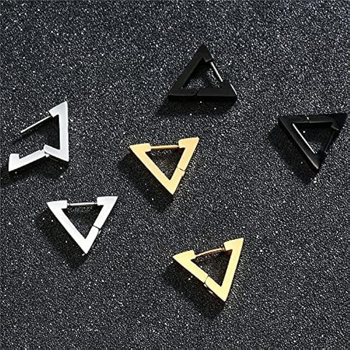 Triangle Earrings, Set of 2, Stainless Steel, Triangle Design, Men's & Women's, 18G, Popular Accessory