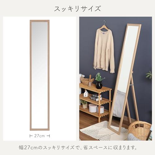 毎日のコーディネートや、お出かけ前のスタイルチェックにあると便利なのが「スタンドミラー」ですよね。スリムなサイズ感なので場所を選ばず設置可能。一人暮らしの省スペースなお部屋でも圧迫感なくご使用いただけます。5カラーから選べる木製のフレームはインテリアと相性よく、幅広いお部屋に馴染んでくれます。また、本体は折りたたむ事ができるので使わないときはコンパクトに収納できます。デザイン性、利便性どちらも兼ね備えた機能的なスタンドミラーです。 サイズ:幅27×奥行39×高さ147.5㎝、折りたたみサイズ:幅27×奥行4×高さ150㎝ 本体重量:5.7kg 素材・材質:プリント紙化粧繊維板/ガラス 原産国:中国 ※完成品 ※飛散防止加工