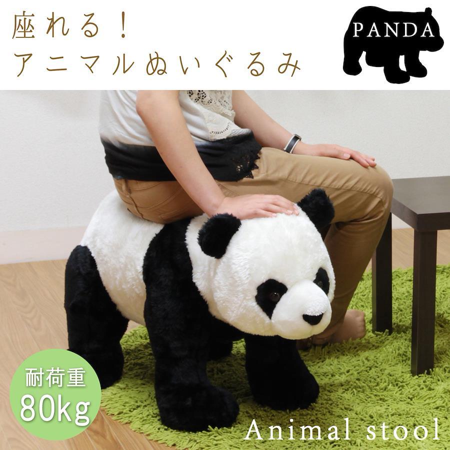 まるで動物園から飛び出してきたかのような可愛らしいパンダの座れるぬいぐるみ。