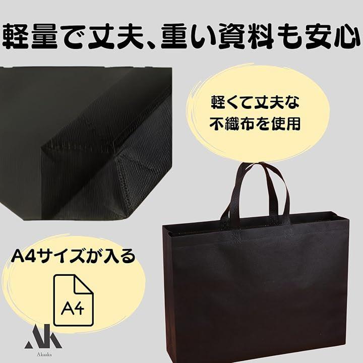 「軽量で丈夫、重い資料も安心」 不織布で作られたこの手提げ袋は、軽量でありながら非常に丈夫です。