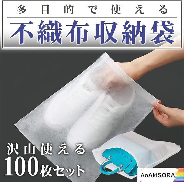 肌触りが柔らかくラッピング・バッグ・シューズ・衣類の収納にお勧めな不織布袋です。