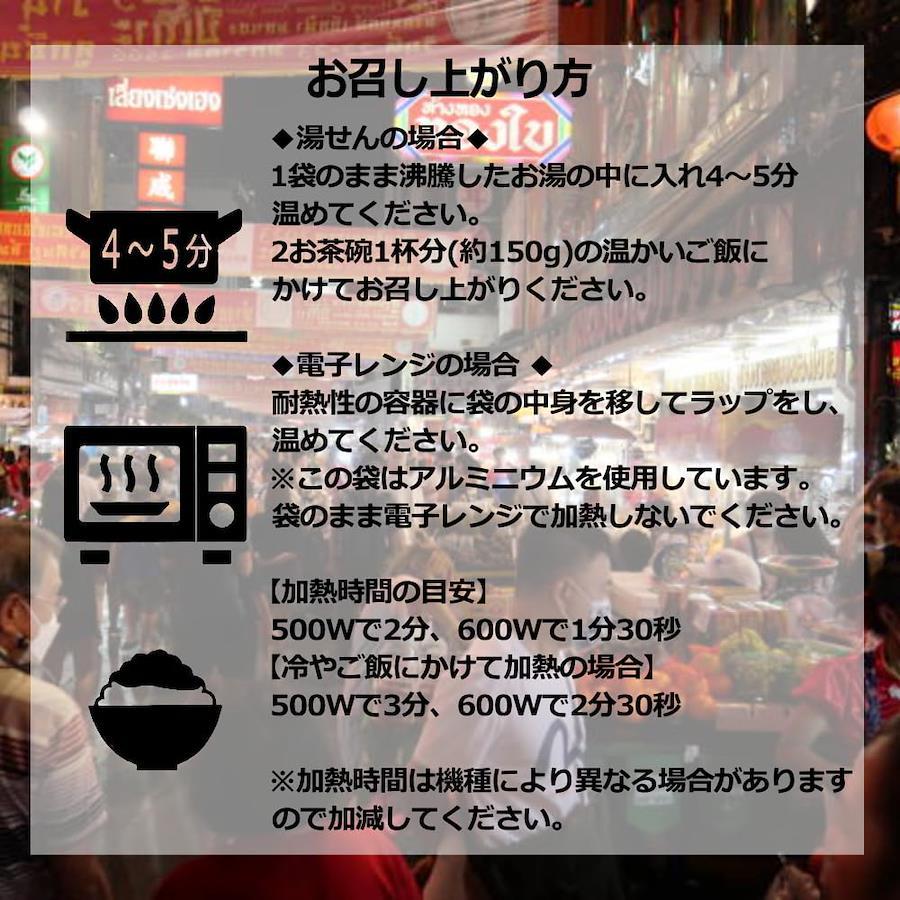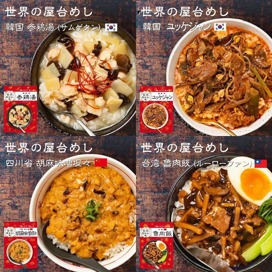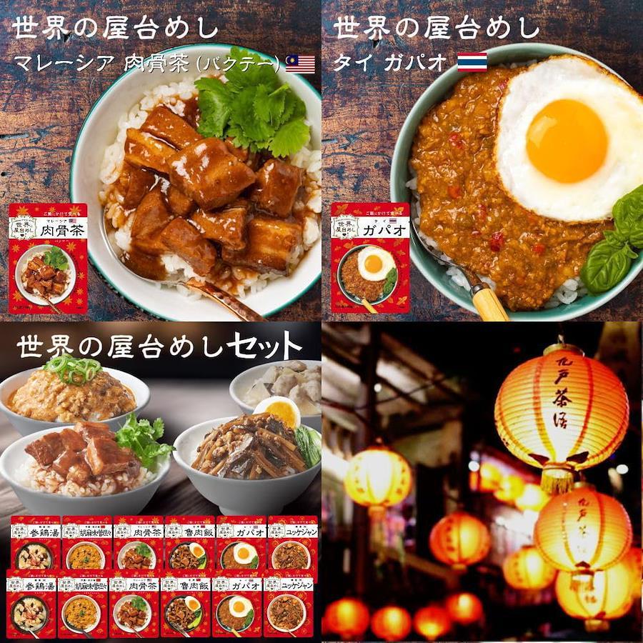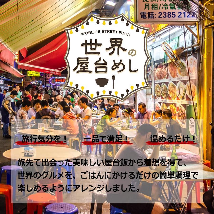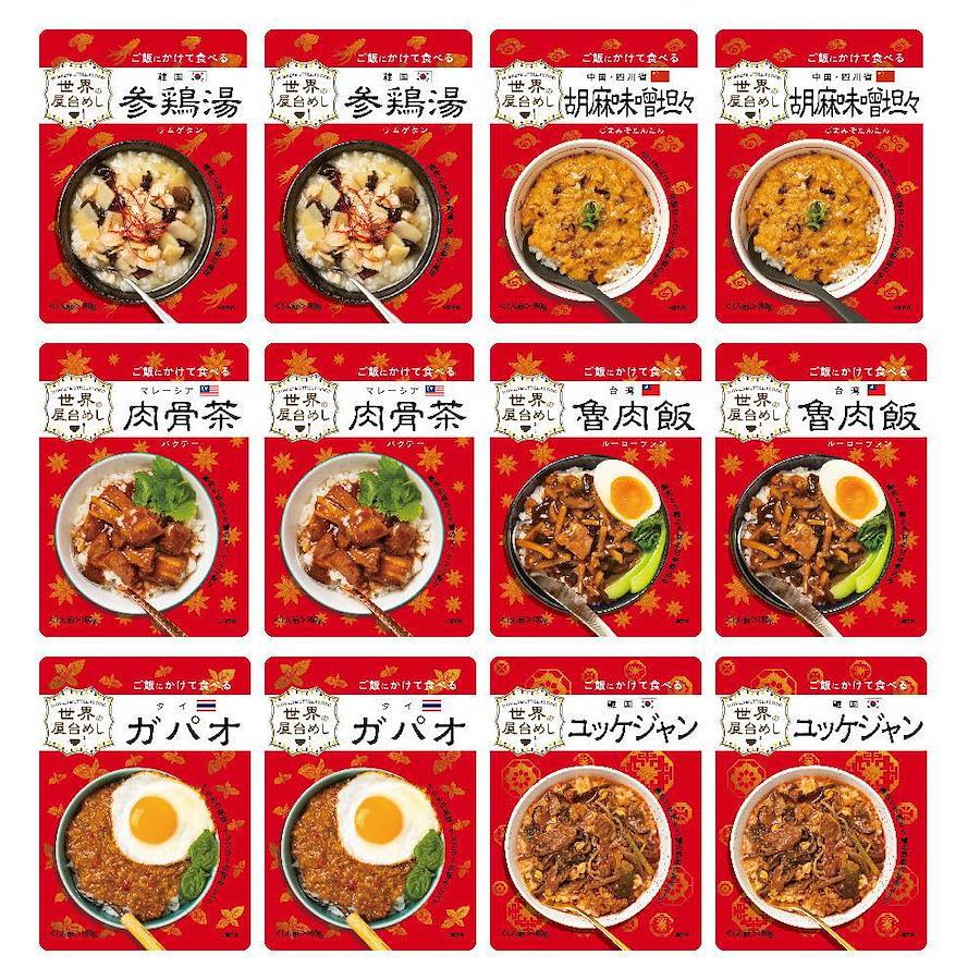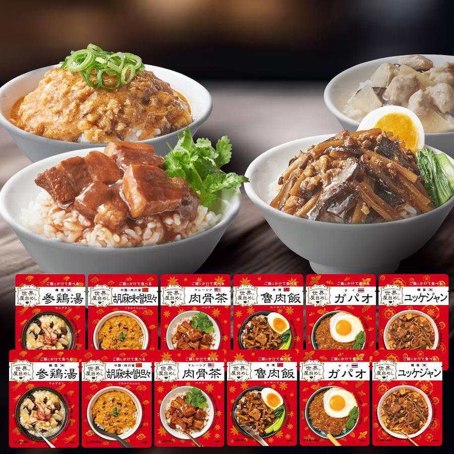 3営業日以内に発送≪新品未開封品≫【世界のグルメをおうちで堪能!】 旅行先で出会ったおいしい屋台めしから着想を得て、世界のグルメをご飯にかけるだけの簡単調理で楽しめるようにアレンジしました。【韓国参鶏湯(サムゲタン)】 鶏肉のうま味に高麗人参と生姜の風味が合わさった、 やさしい味わいのスープ料理です。【韓国 ソルロンタン】 「雪のように白く濃いスープ」を意味する韓国発祥の料理です。 牛の旨みとコクを余すところなく引き出した豊かな味わいのスープをご堪能ください。 【中国・四川省 胡麻味噌担々(ごまみそたんたん)】 白ごまのコク、花椒のしびれと豆板醤の辛みが食欲をそそる。 ご飯との相性はもちろん!中華麺にかけてアレンジも!【台湾魯肉飯(ルーローファン)】 世界のグルメをおうちで堪能! 八角香る本格的な豚肉と三種の具材の甘辛煮込み。台北の代表的なご飯ものです。柔らかくなった肉を煮汁と一緒にご飯にかけてお召し上がりください。 【韓国ユッケジャン】 世界のグルメをおうちで堪能! 薄切り牛肉と5種の野菜をニンニクの風味とコチュジャンのコクを活かしたスープで煮込みました。 韓国の定番スープ料理です。【アメリカ・テキサス州 チリコンカン】 ひよこ豆とキドニービーンズ2種の豆と牛ひき肉のスパイシートマト煮込み。 アメリカ・テキサス州発祥の料理です。地域や家庭によって味のバリエーションがあるチリコンカン。 【タイ ガパオ】 バジルの風味、ナンプラーのうま味とコクがたまらない。 タイの定番料理をご自宅で!”ガパオ”=”バジル”のことで、バジルの香りや味わいを楽しめる1品にもなっています。【マレーシア 肉骨茶(バクテー)】 豚肉のうま味と6種のスパイスの香り。 香味野菜を効かせたスープで煮込んだ、マレーシアを代表するソウルフード。ごはんとの相性抜群! 【シンガポール ラクサ】 ココナッツミルクと香辛料で仕上げたスパイシーでコクのあるスープが決め手の麺料理「ラクサ」。 ご飯にあうよう、酸味と辛みを調整しました。4種の具材入りです。 もちろん麺にかけてもお楽しみいただけます。【中国・重慶 麻辣火鍋】 世界のグルメをおうちで堪能! 花椒(ホアジャオ)や唐辛子など香辛料をたっぷり入れた 真っ赤なスープに具材を入れて煮込む「火鍋」をお手本にしました。 痺れる辛さが後を引く美味しさです。【世界の屋台飯の調理方法】 ■湯せんの場合: 袋のまま沸騰したお湯の中に入れ4~5分温め、お茶碗1杯分(約150g)の温かいご飯にかけてお召し上がりください。 ■電子レンジの場合: 耐熱性の容器に袋の中身を移してラップをし、温めてください。 加熱時間の目安:500Wで2分、600Wで1分30秒 ※袋にアルミニウムを使用しているため、袋のまま電子レンジで加熱しないでください。 ※お召し上がりの前に袋の裏の説明を必ずご確認ください。【世界の屋台めし】【世界の屋台飯】【世界の屋台メシ】【世界の屋台ご飯】【世界の屋台ごはん】【世界の屋台グルメ】【世界の地元めし】【世界の地元飯】【世界の地元メシ】【世界の地元ご飯】【世界の地元ごはん】【世界の地元グルメ】【世界のストリートめし】【世界のストリート飯】【世界のストリートメシ】【世界のストリートご飯】【世界のストリートごはん】【世界のストリートグルメ】【重要】メーカーによる商品リニューアルに伴いパッケージ(内容量も含む)変更が行われた場合、新パッケージでお届け致します事ご了承願います。