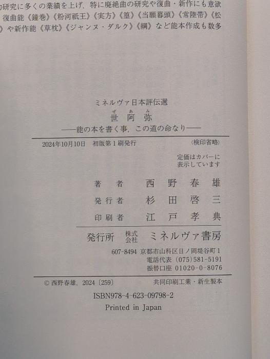 a04-260310004002015-000世阿弥:能の本を書く事、この道の命なり (ミネルヴァ日本評伝選) ミネルヴァ書房 西野春雄中世日本を熱狂させた能の大成者。その劇的な生涯と芸術的遺産に迫る。