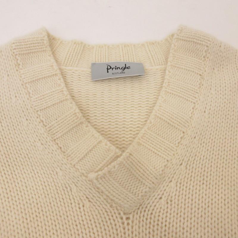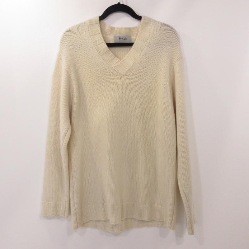 Pre-owned V-neck cashmere knit sweater, ivory, size M