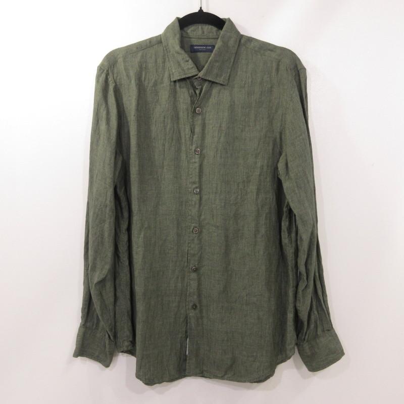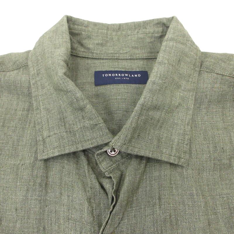 Pre-owned TOMORROWLAND | Tomorrowland Long Sleeve Linen Semi-Wide Collar Shirt, Khaki, Size M, 63-01-42-01306