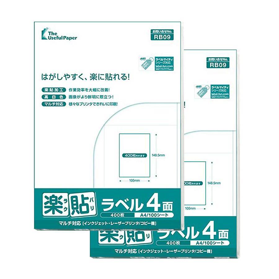 中川製作所 楽貼 ラベル 用紙 ラベルシール 4面 A4 200枚( 100枚入×2梱包 )UPRL04A-100 ( RB09 )
