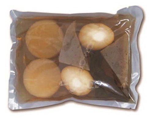 温めるだけで簡単に食べられる丸善こだわりのおでんです。具材は一の袋とニの袋に分かれており、一の袋の練り種はすり身のおいしさを生かすためさっと加熱し、二の袋はだしをしみ込ませ、柔らかくするためじっくりことこと加熱しました。一には鱈の角揚げ(さつま揚)、たこの団子(たこ入り揚げ蒲鉾)、鯵のつみれ(鯵の揚げ蒲鉾)の3種が各二個ずつ入っており、ニには玉子、大根、結び昆布、こんにゃくの四種が各二個ずつ入っています。鍋つゆのおいしいおでんになっておりますので、残ったつゆでだし茶漬けや、寄せ鍋なども楽しめます。
