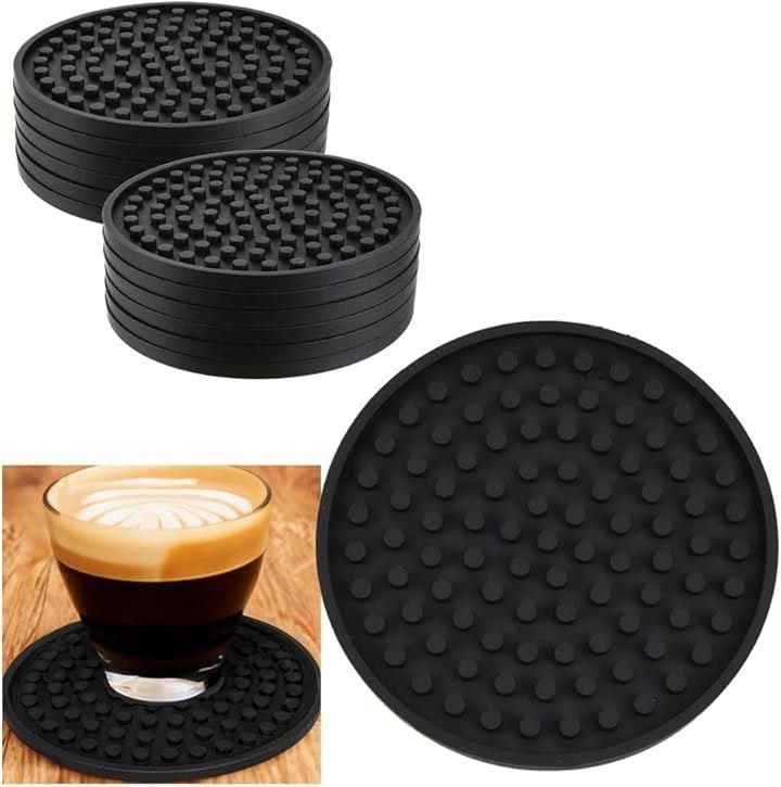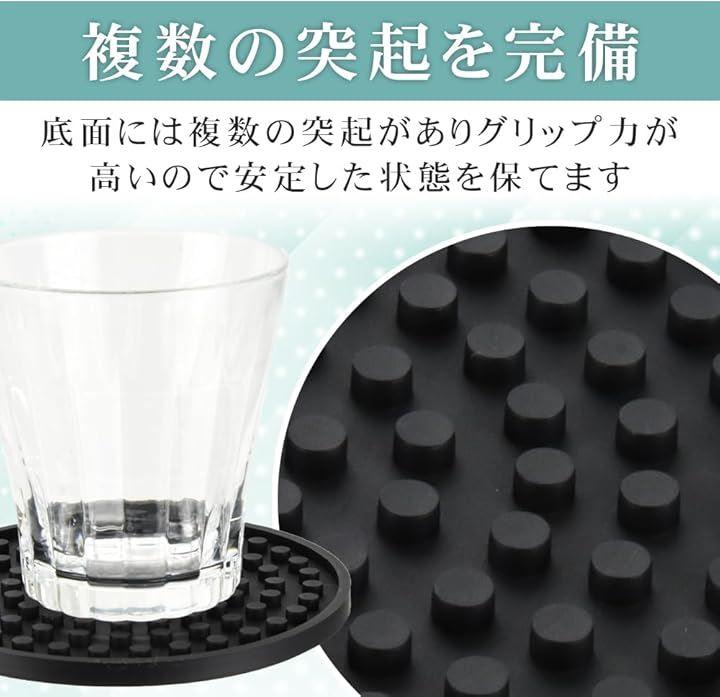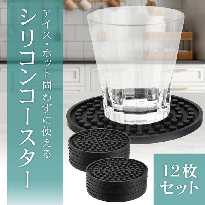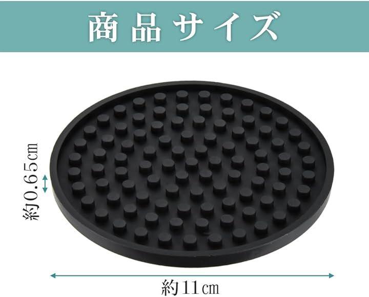 「セット内容」コースターx12枚 「サイズ(約)」直径:11cm 厚さ:0.65cm 「カラー」ブラック 「材質」シリコン