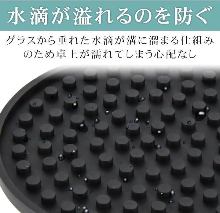 表面が凹凸したデザインが特徴で、グラスから垂れた水滴が溝に溜まる仕組み。
