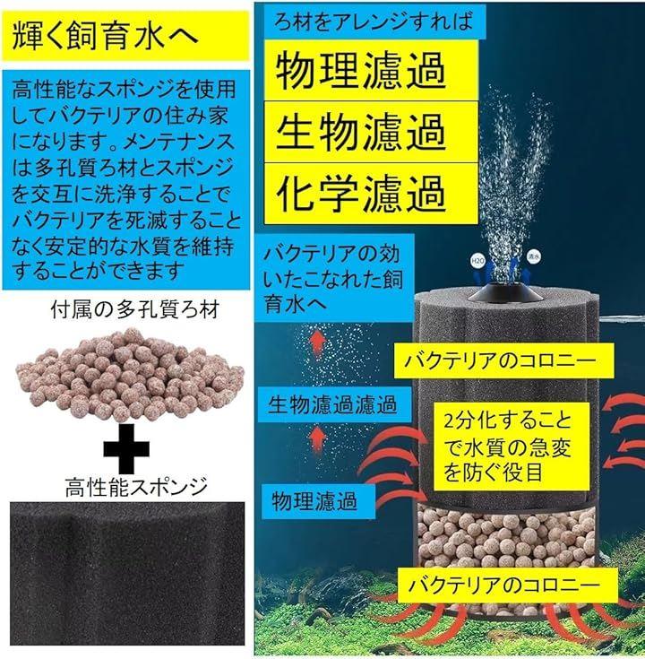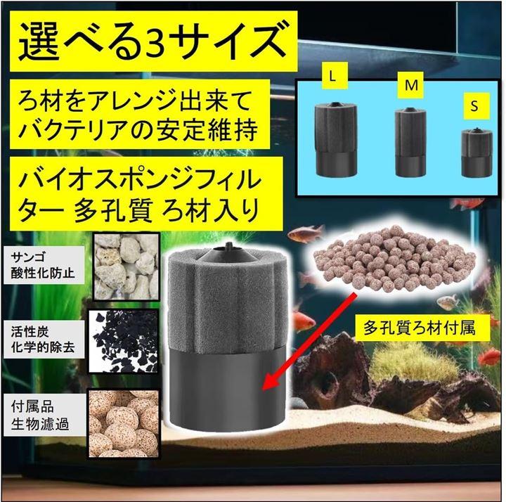 「選べる3サイズ」バイオスポンジフィルター ろ過 ろ材 スポンジ スポンジフィルター 多孔質 ろ材入り。 アクアリウム 水槽 熱帯魚 金魚 メダカ に ご使用ください。