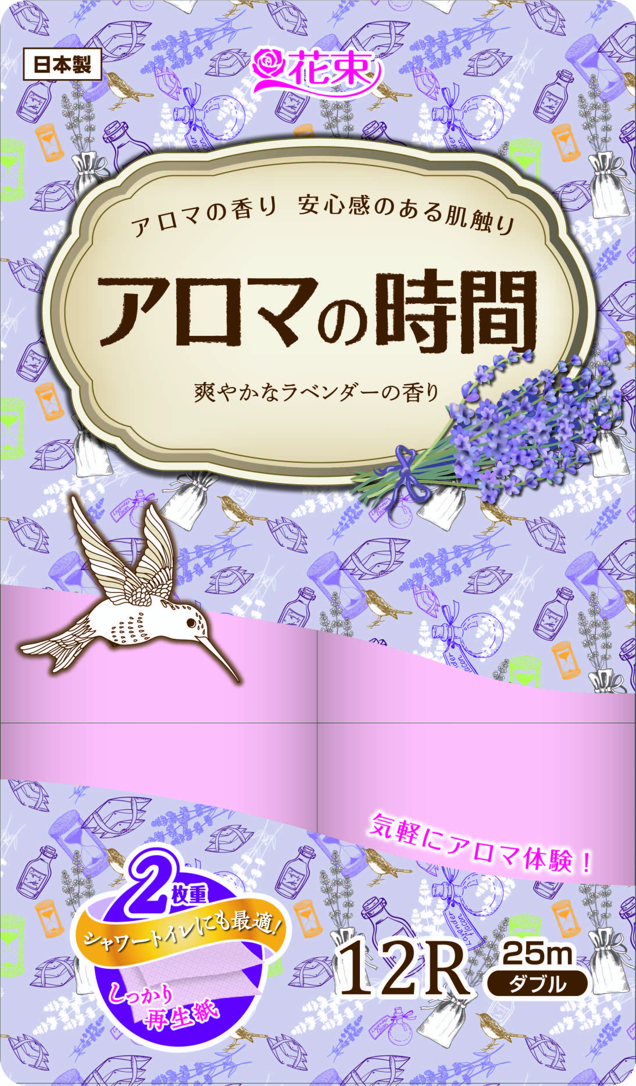 アロマブレンドの爽やかなラベンダーの香りがふわっと広がる、ダブルのピンクカラートイレットペーパーです。