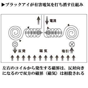 アンペールの法則とは電流とそのまわりに出来る磁場との関係をあらわす法則で、ブラックアイでは、反対を向いたコイルが重なり合うことで同方の磁気を打ち消します。