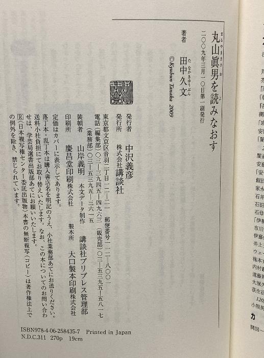 Rereading Maruyama Masao (Kodansha Sensho Metier 435) Kodansha Tanaka Hisafumi