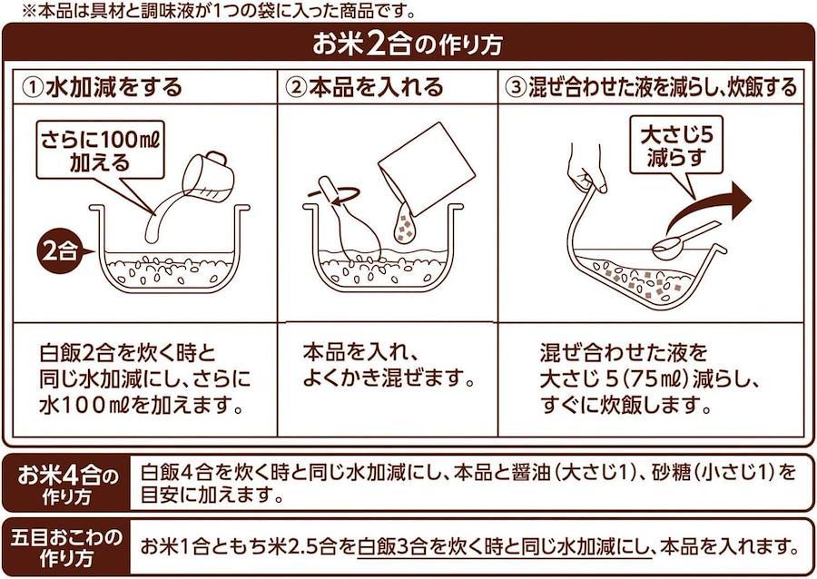 といだお米に入れて、炊飯器で炊くだけで、ご家庭で手軽に「釜めし」が楽しめます。具材と調味料を大釜でじっくり煮込んで作っているので、旨味がぎゅっと詰まった「味わい具材」が特徴です。風味を逃しにくい「低温殺菌製法」だから、味わい豊かに仕上がります。家族で楽しめるお米3合用(3~4人前)です(「2合」「4合」「おこわ」レシピ付き)。具材は、主役の鶏肉と、筍・にんじん・椎茸・わらび。鶏肉の旨味と、野菜や調味料の旨味がぎゅっと詰まった味わい深い釜めしの素です。