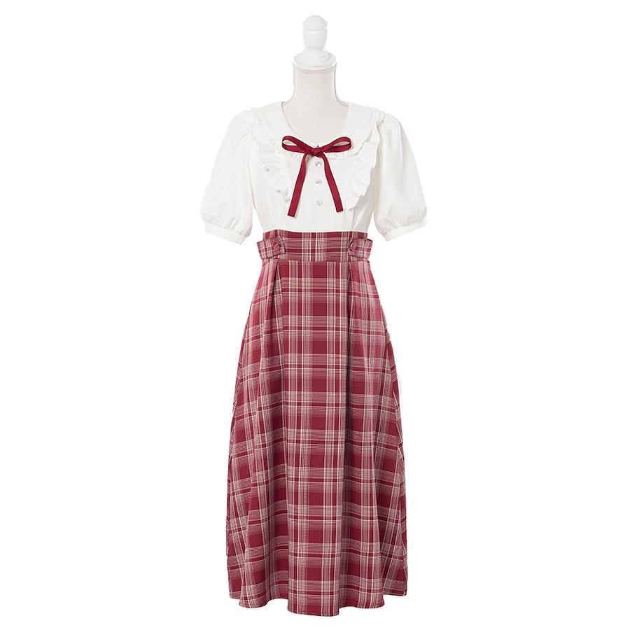 【コーディネート】この1枚で可愛くコーディネートが決まるので、シーンに合わせてお好みでバッグや靴を選んでください◎どの色も白い靴下と相性抜群で、合わせるだけでガーリーさもアップするはず♪定番ストラップパンプスと合わせるのはもちろん、ボルドーとネイビーはスルールライクな雰囲気もあるのでローファー等を足元に合わせても可愛くておすすめ!写真映えも良くて可愛く盛れるので、推し活やテーマパークでも活躍すること間違いなし♪《透け感》カラーによってあり 《生地の厚さ》薄手 《裏地》あり 《伸縮性》なし《生産国》中国