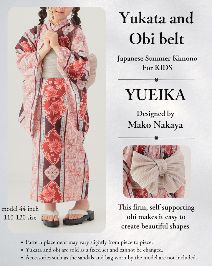 ■サイズ子供用…110-120、130-140 帯サイズ:巾19cm×380㎝詳細は画像サイズ表をご確認下さい(同柄にて大人浴衣、子供甚平も販売しています)