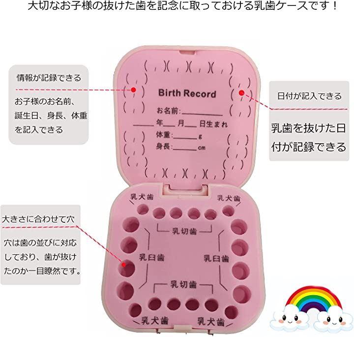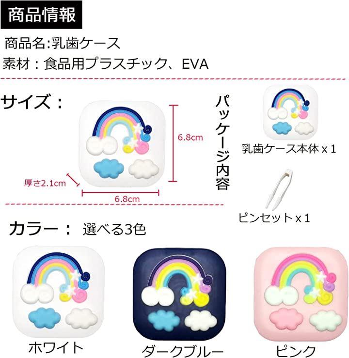 商品情报商品名 乳歯ケースカラー ピンク、ホワイト、ブルー素材 食品用プラスチック、EVAサイズ 長さ6.8cm、幅6.8cm、厚さ2.1cm、重さ30gパッケージ内容 乳歯ケース本体x1、ピンセットx1お子様の乳歯ずっと記念に上部に乳歯が抜けた日付を記入でき、下部に20本すべての乳歯が保管できます。