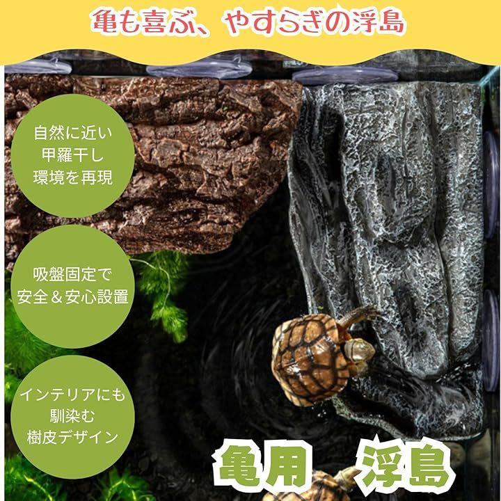 「自然に近い甲羅干し環境を再現」カメや爬虫類が自然に日光浴できるよう設計された浮遊プラットフォーム。
