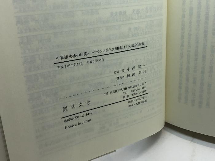 商品名:予算議決権の研究: フランス第三共和制における議会と財政 弘文堂 小沢 隆一