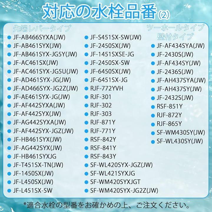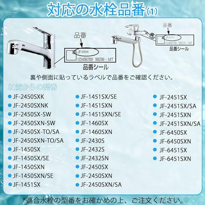 「適合水栓の以前からの型番」JF-2450SXK、JF-2450SXNK、JF-2450SX-SW、JF-2450SXN-SW、JF-2450SX-TO/SA、JF-2450SXN-TO/SA、JF-1450SX、JF-1450SX/SE、JF-1450SXN、JF-1450SXN/SE JF-1451SX、JF-1451SX/SE、JF-1451SXN、JF-1451SXN/SE、JF-1460SX、JF-1460SXN、JF-2430S、JF-2432S、JF-2432SN、JF-2450SX、JF-2450SXN、JF-2450SXN/SA、JF-2451SX、JF-2451SX/SA、JF-2451SXN、JF-2451SXN/SA、JF-6450SX、JF-6450SXN、JF-6451SX、JF-6451SXN。