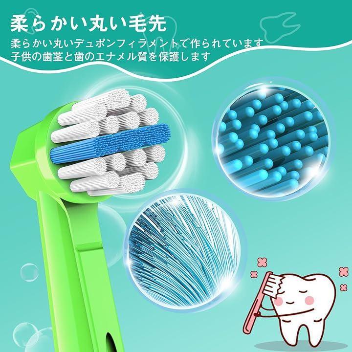 「子供向け設計」小さくて丸いブラシヘッドが子供の口にぴったり合い、(オーラルb用の替えブラシ 子供)柔らかな極細毛が歯や歯ぐきを傷つけることなく効率的に清潔できます。