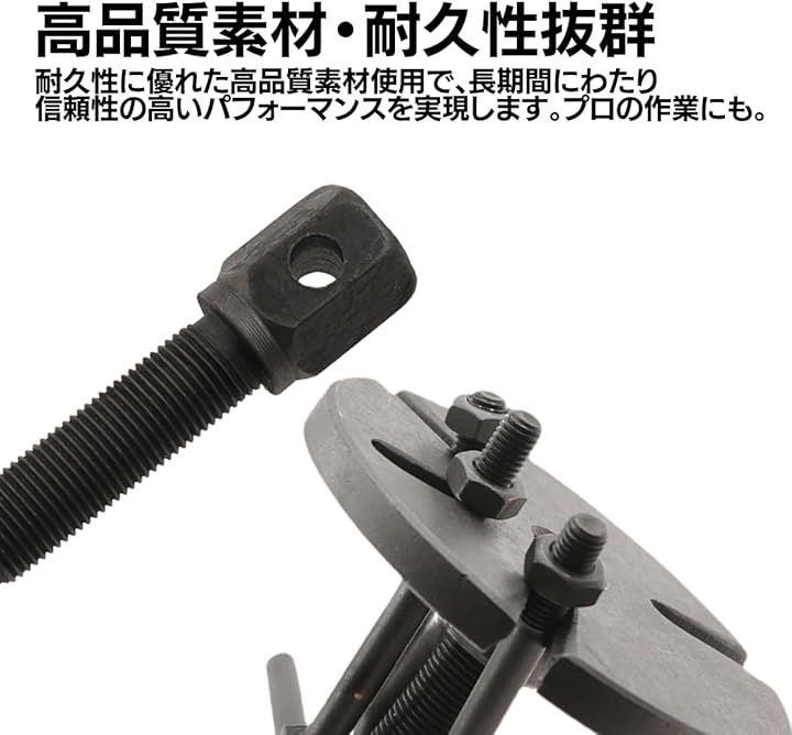 「高品質素材・耐久性抜群」このフライホイールプーラーは、耐久性に優れた高品質素材を使用し、長期間にわたり信頼性の高いパフォーマンスを発揮、また エンジンチューニングやオーバーホールに最適で、クランクセパレーターやハーモニックバランサー、ベアリングプーラーとしてもプロの作業に対応するプーリー外しツール