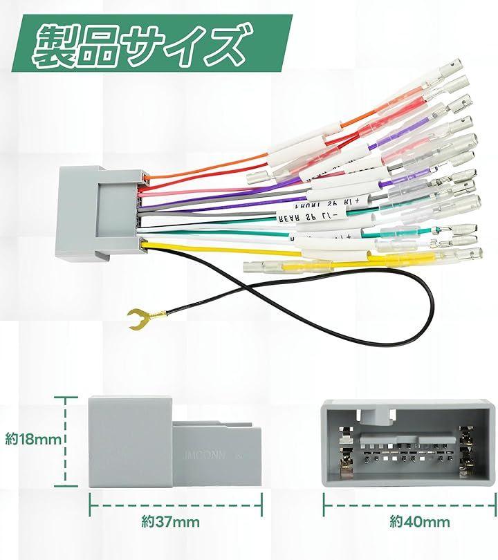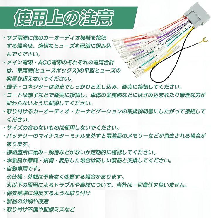 「主な用途」として、純正オーディオから市販ナビへの換装に最適で、電源分岐機能(+B/ACC/ILLMI)を搭載しているため、ETCユニットやドライブレコーダー、室内照明改造など、さまざまな機器の増設が可能です。