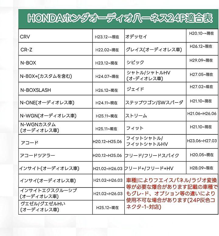 「商品情報」オーディオハーネス 24P 配線 変換キットx1 ホンダ車専用の純正24ピングレーコネクターと市販カーナビを接続するための変換キットです。
