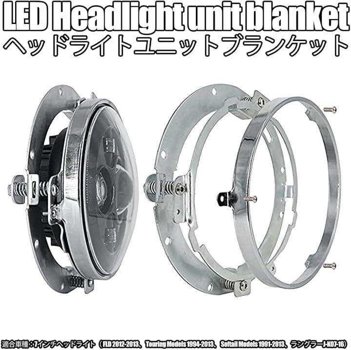 7インチのLEDヘッドライトをご使用のバイクに対して交換できる「ヘッドライトリングマウントブラケット」になります。