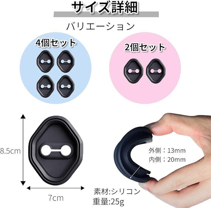 「商品詳細」商品名:ドアストライカー カバー ホンダ シリコン 素材:シリコン サイズ:縦約8.5cm 横約7cm 個数:4個