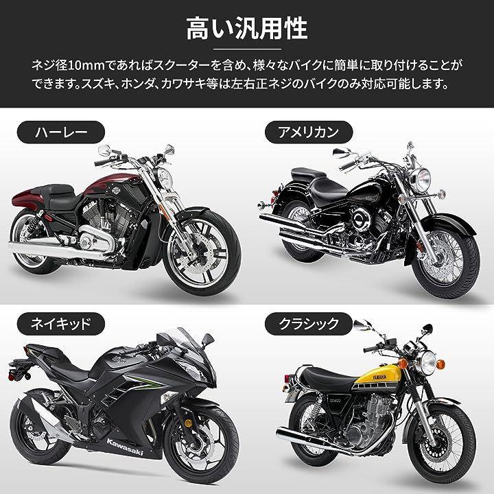 ネジ径10mmで汎用性が高く、 ハーレー アメリカン クラシック ネイキッド スクーターまでM10であれば様々なバイクのミラーとして簡単に取り付けることができます。
