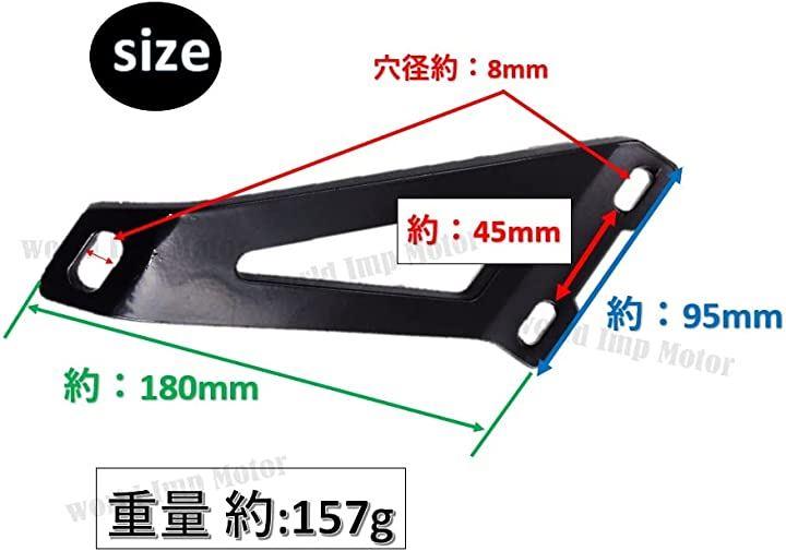 「商品内容」 ・素材:ビレット アルミニウム ・オフセット量 :90mm ・厚さ: 6mm ・ボルト穴 車体側:8mm ・ピッチ:64mm ・ボルト穴 サイレンサー側:8mm