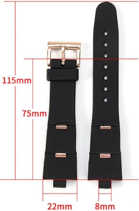 「商品仕様」ブラックxシルバー ラグ側:ベルト幅22mm(凸部分8mm) バックル側:ベルト幅16mm、厚さ約3mm 長さ:長い方115ミリ、短い方75ミリ