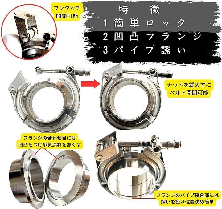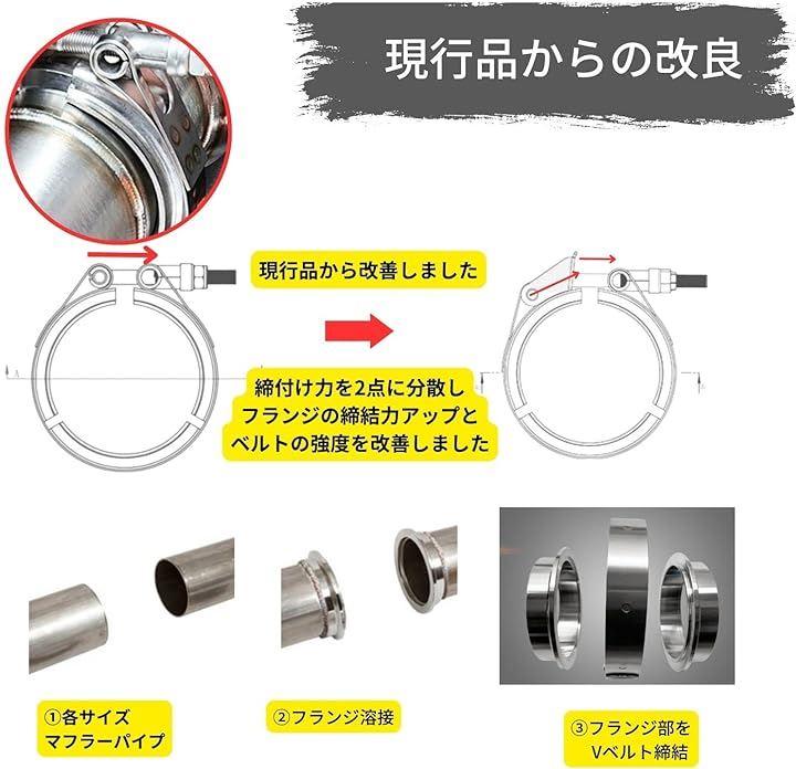 ・自動車、バイクなど汎用、フランジ付き ステンレスマフラー Vバンド 商品となります。